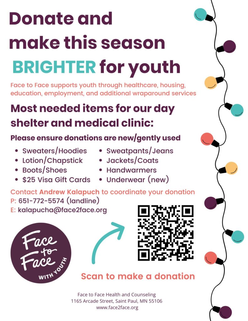 Support our holiday programming and year-round services with a donation at face2face.org/donate.
