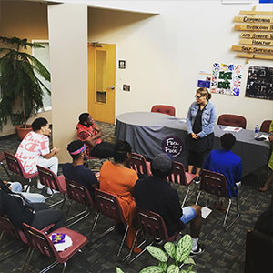 P.S. – Our recording arts programming offered at SafeZone drop-in day shelter also started because of the Youth Leadership Council. A young woman shared she needed a creative outlet to help her de-stress in a healthy way. The council helped design the program and now we have a case manager who specializes as a teaching artist to support young people’s creative endeavors through a recording studio and open mic sessions.