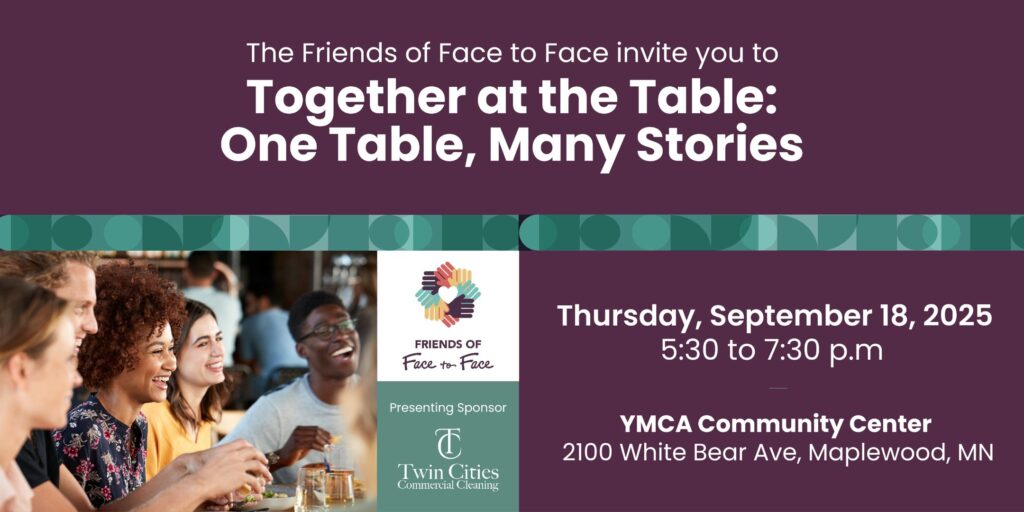 Join the Friends of Face to Face for Together at the Table: One Table, Many Stories — a fundraising celebration of culture, resilience, and the power of youth shared through meals, stories, and hope in uncertain times.